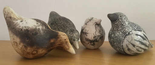 Ook is het mogelijk tijdens de RAKU workshop een biscuitgebakken werkje te kopen. Ik heb bijvoorbeeld vogels, schaaltjes, kommen en vaasjes die je kunt glazuren of anders bewerken voor de rakustook.