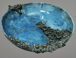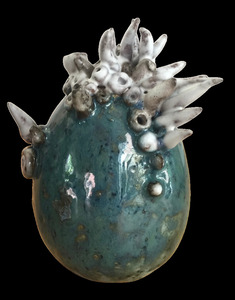 2018Steengoed gebakken OBJECT 5 uit de serie Zeeschalen. Met zeepokken, geglazuurd.